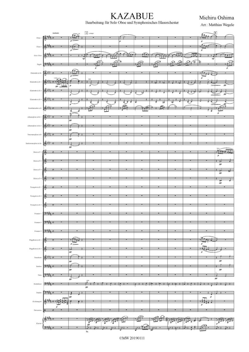 Diese zauberhafte Melodie von Michiru Oshima habe ich in eine Fassung für Solo Oboe und Symphonisches Blasorchester gesetzt.Das Arrangement ist 2019 für eine Konzertreihe mit dem Bundespolizeiorchester Hannover entstanden.